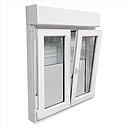 La "SERIE BIGWIN 70 VENTANA PVC 800X2285 BLANCO CON PERSIANA-4/16AR/4 ONE -DCHA" es una ventana de PVC de gran tamaño, diseñada para proporcionar aislamiento térmico y acústico, además de control de luz y privacidad gracias a su persiana integrada.